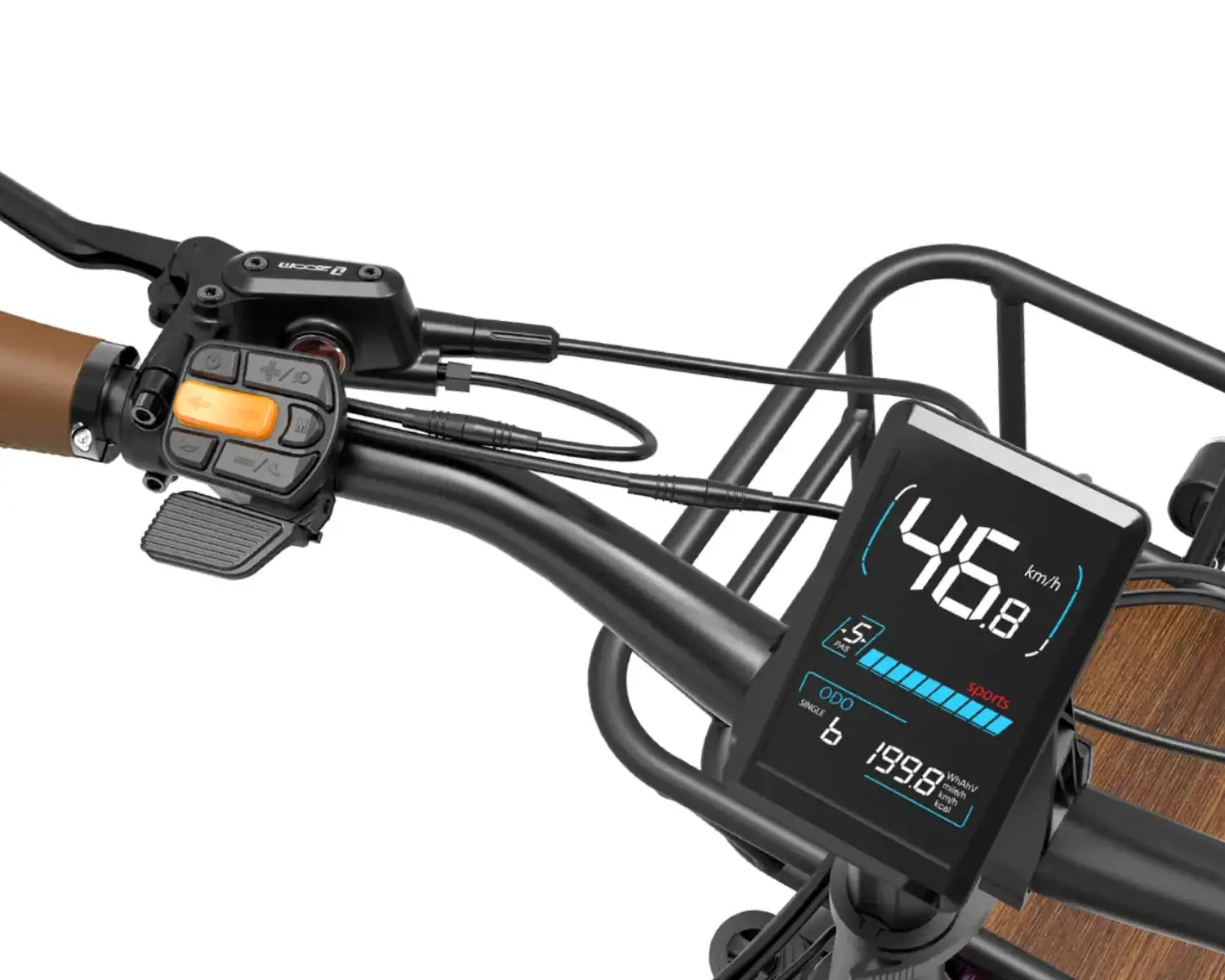Farbiges Display mit Hintergrundbeleuchtung, um Geschwindigkeit, Kilometerstand, Leistung und mehr im Auge zu behalten.