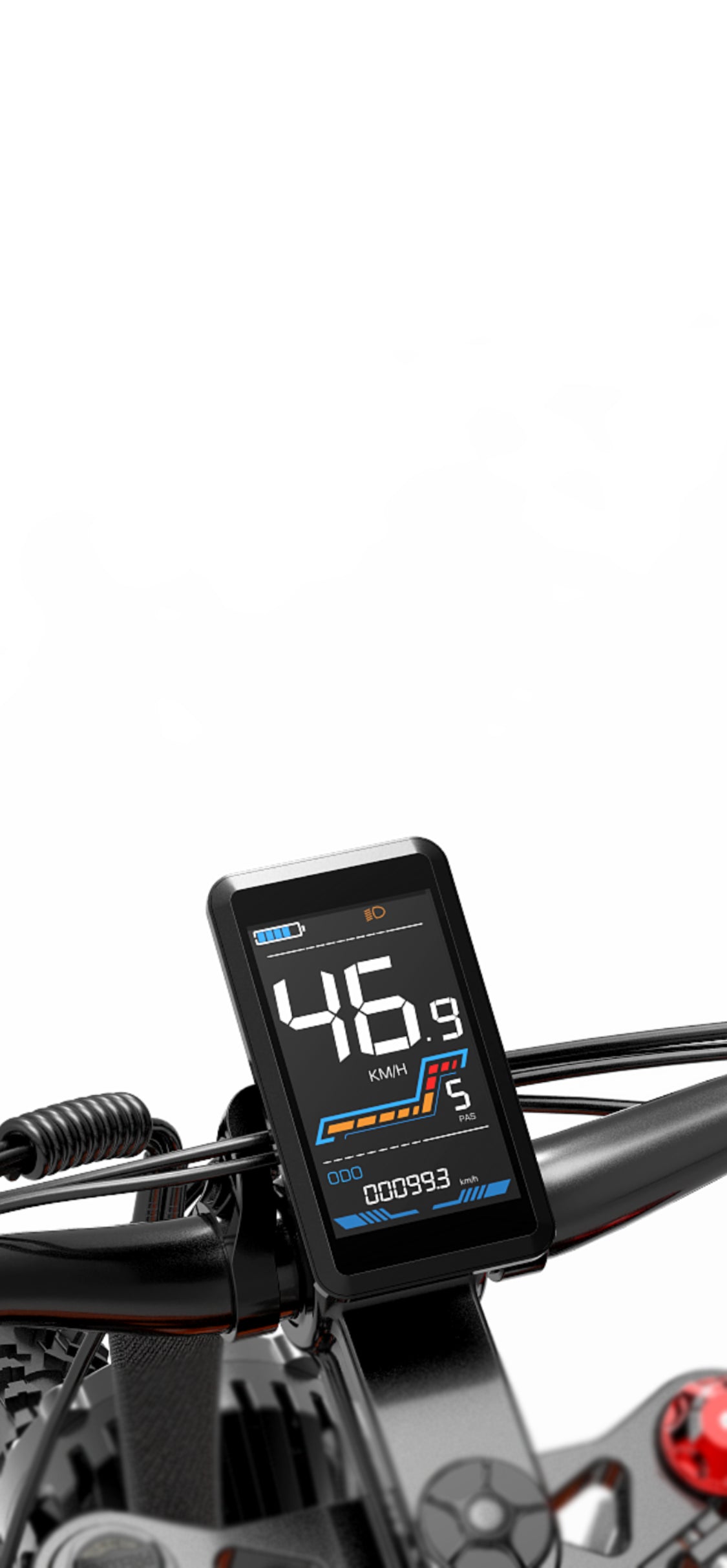 Le Lankeleisi MG740PLUS est équipé de moteurs sans balais de 1000 W à l'avant et à l'arrière et est associé à de gros pneus 26*4.0 pour conquérir facilement n'importe quel terrain, qu'il s'agisse d'une section boueuse ou enneigée. Le MG740plus est équipé d'une batterie Samsung amovible de 48 V 20 Ah et dispose une autonomie de 150 km avec assistance au pédalage et de 70 km en conditions purement électriques.