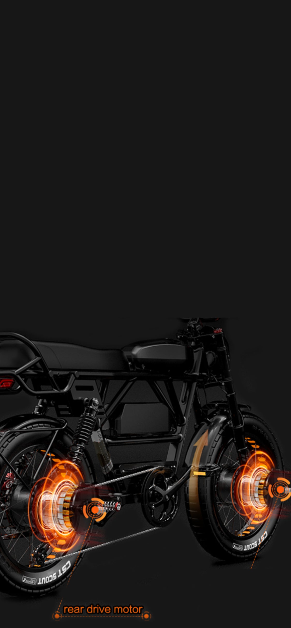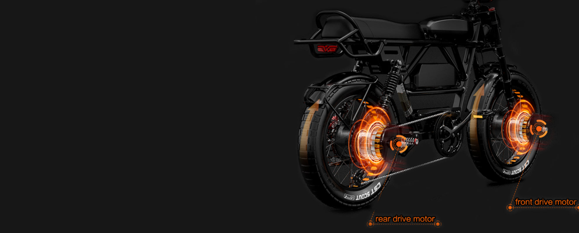| Moteur | Moteur brushless à traction avant 48 V 1 000 W et moteur brushless à traction arrière 1 000 W, couple maximal 95 Nm | |