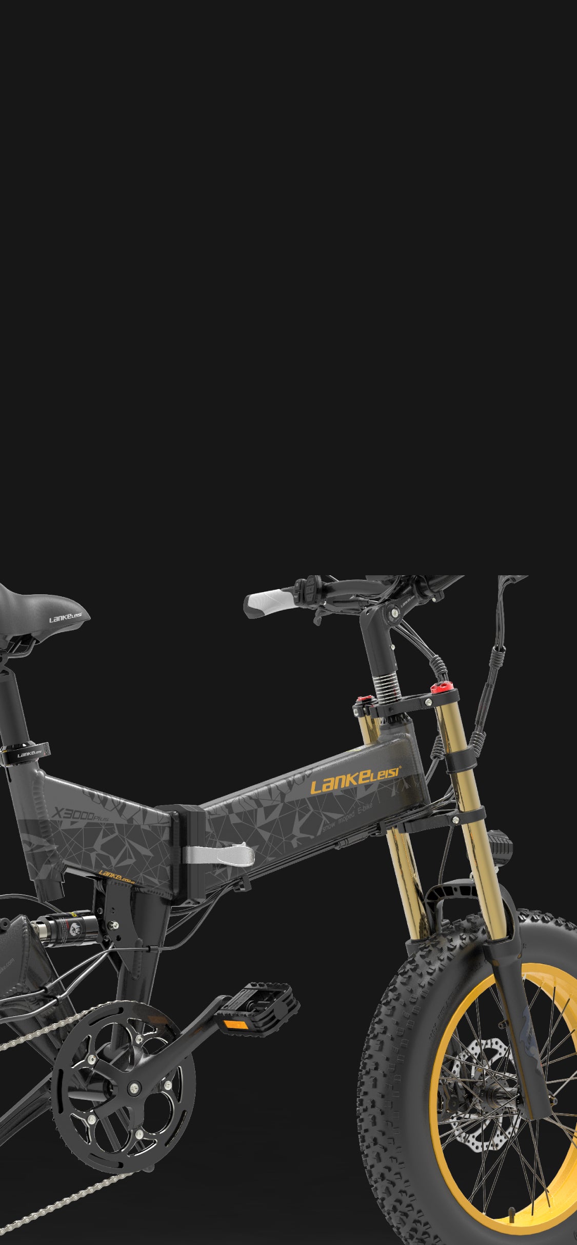 Lankeleisi X3000Plus-up is equipped with a 48V 1000W motor and 20*4.0 fat tires to comfortably cross rough roads.A 48V 17.5Ah large-capacity removable battery with a range of 60KM in electric mode and 120KM in pedal-assisted mode.Foldable design for easy storage and transport, 15S quick folding, easy to carry for outdoor rides.